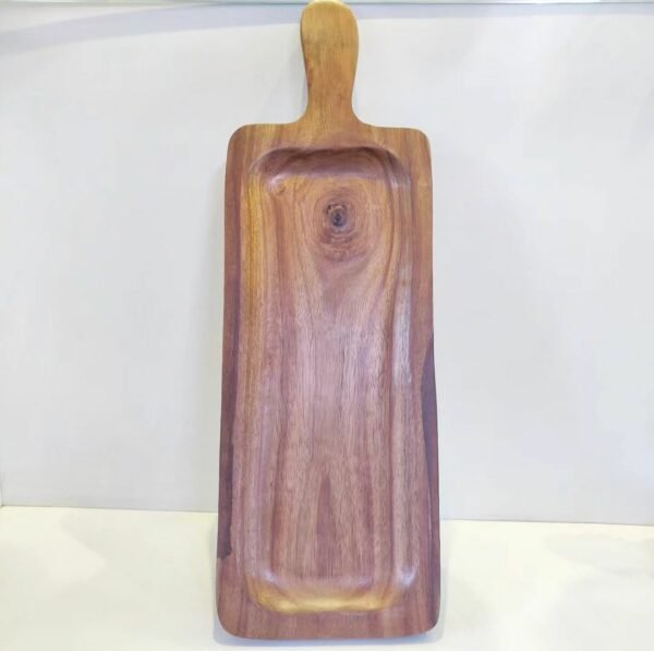 The wooden rectangular platter is a versatile and timeless serving piece, crafted from high-quality wood. Its rectangular shape offers a sleek and modern design that complements a variety of table settings.